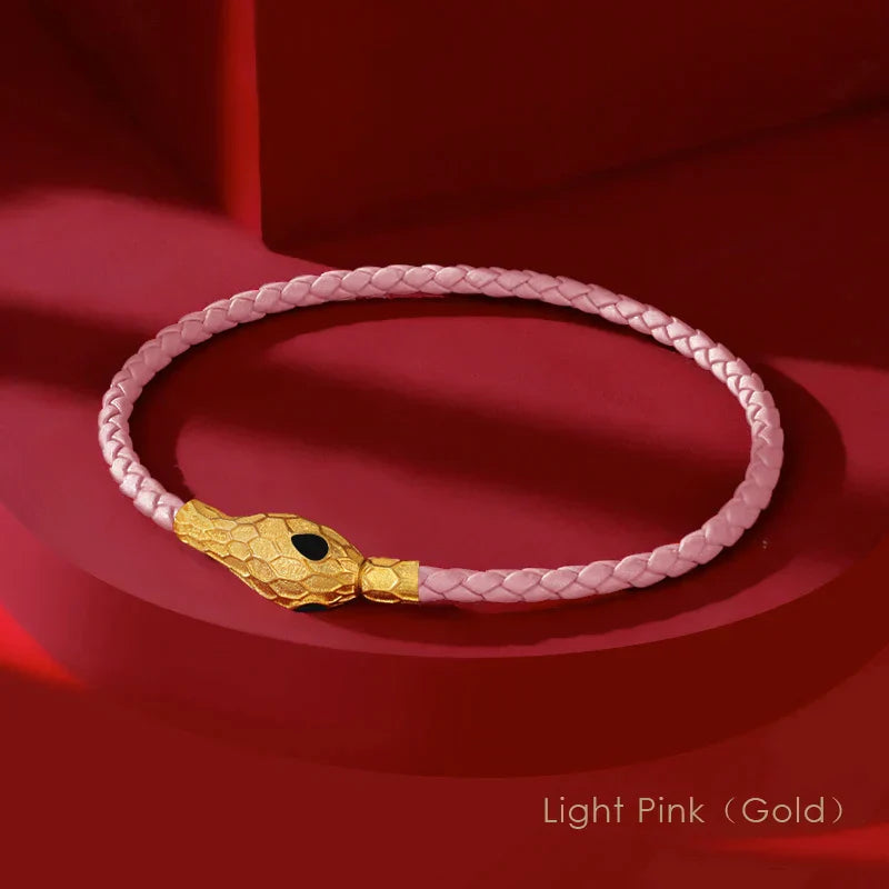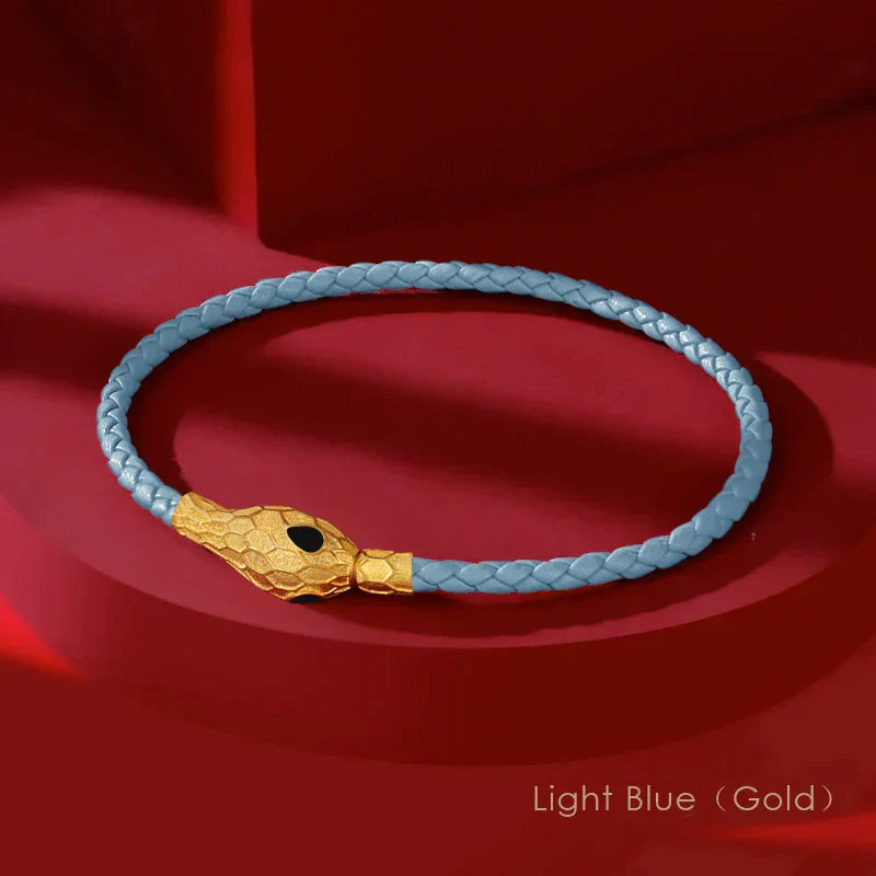 Omsluten av flätat läder och låst med ormens genomträngande blick är Aspis Viper-armbandet mer än bara ett smycke—det är en förlängning av din närvaro, som slingrar sig runt handleden med tyst dominans.