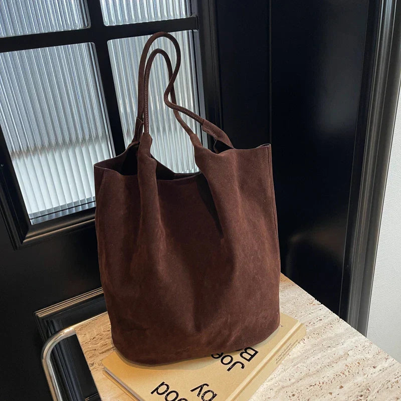 Judy Suede Tote Bag kombinerar stil och funktion med sin rymliga design och mjuka, texturerade yta. Med en ledig silhuett, öppen topp och robusta långa handtag är den den perfekta följeslagaren året runt – oavsett om du ska till jobbet, shoppa eller ge dig ut på helgäventyr.